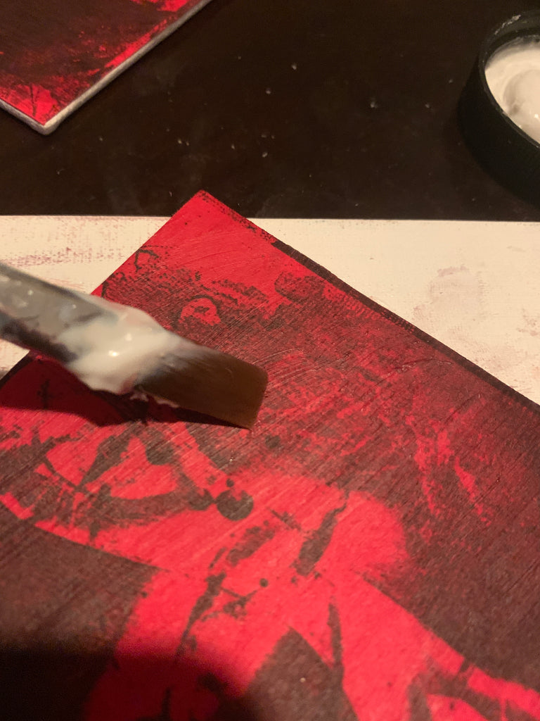 Each assemblage is a multi-media piece comprised of an original Curse Mackey "Exorcism .44" ink print on 92lb. french-made paper which was then assembled onto a 4" x 4" canvas art panel.